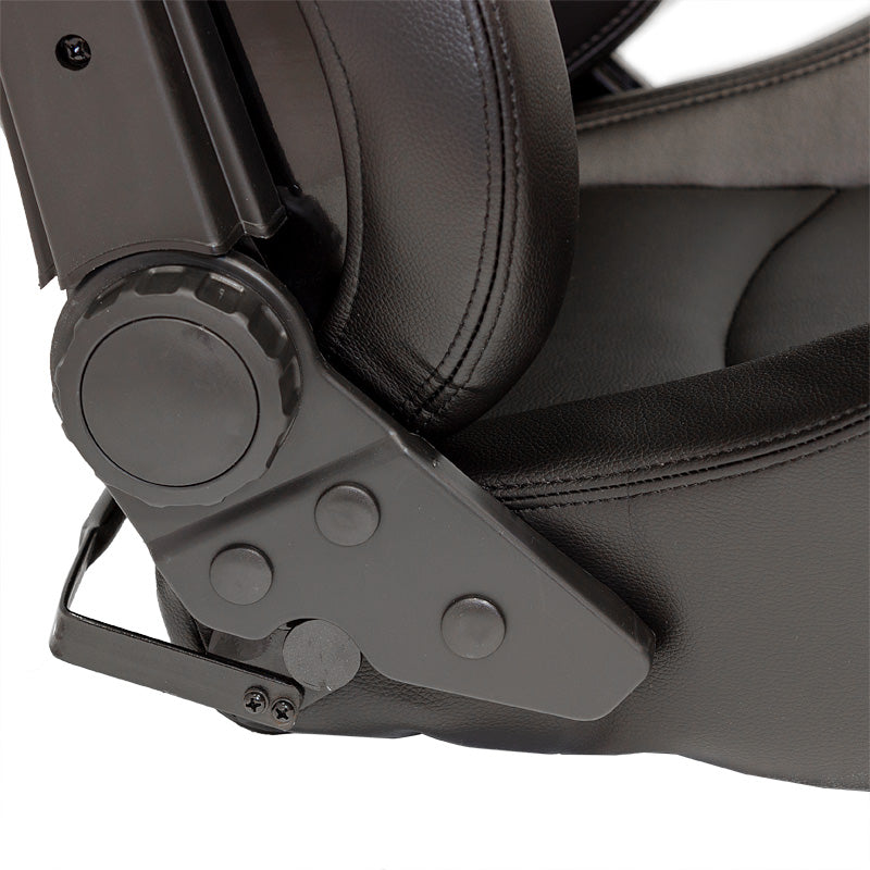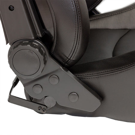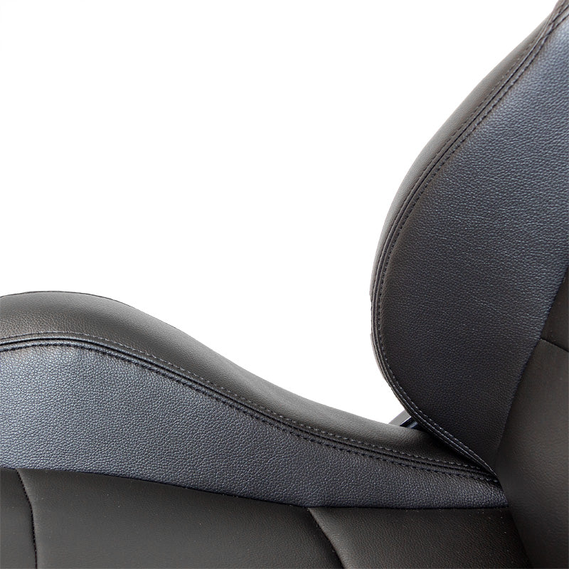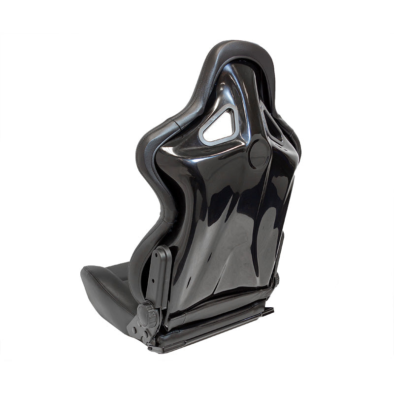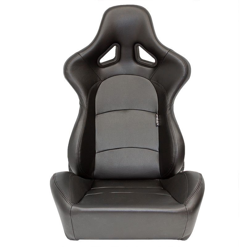AutoStyle, Sportssæde 'BS2' - Sort Syntetisk Læder - Dobbelt Justerbar Fiberglass Rygstøtte - Inkl. Skydere