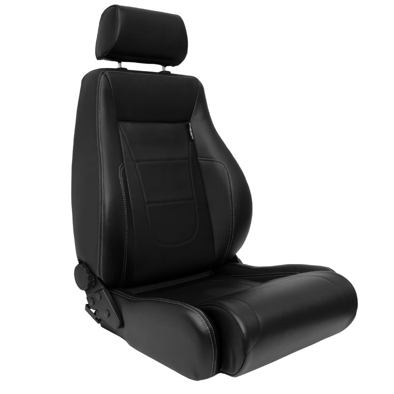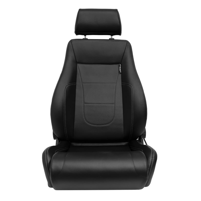 AutoStyle, Sportssæde 'Retro II' - Sort Syntetisk Læder med Sølv Syning - Dobbeltjusterbar Rygstøtte - Inkl. Skydeskinner