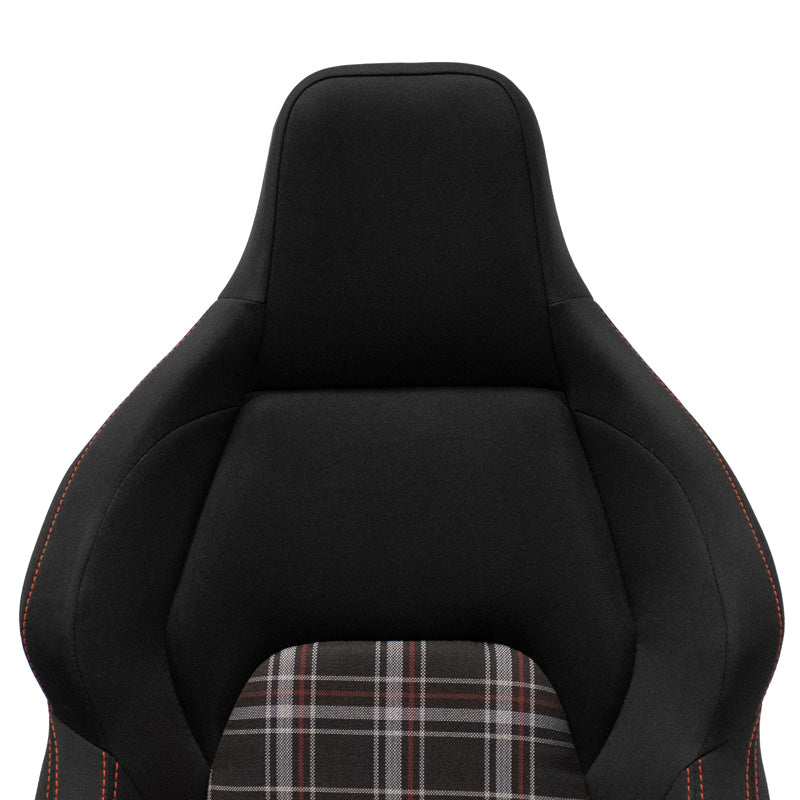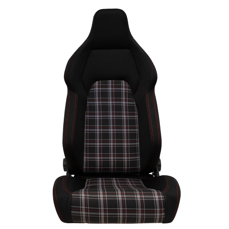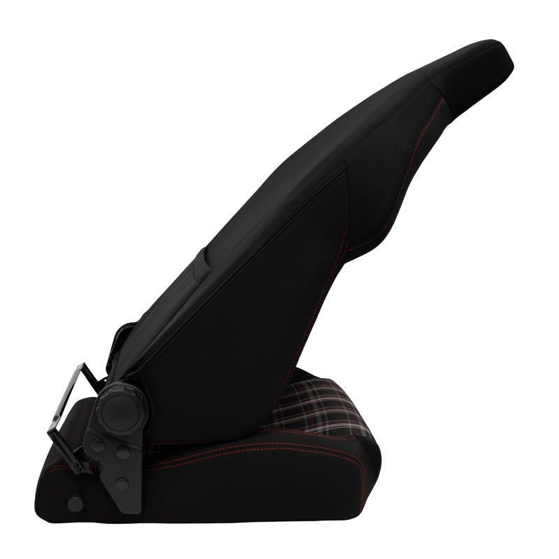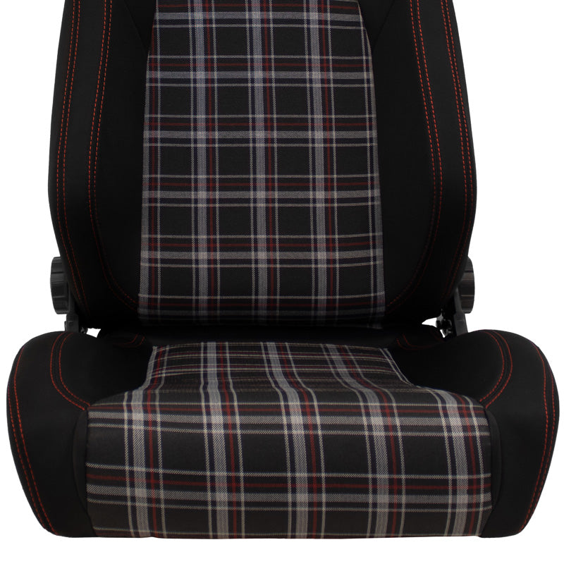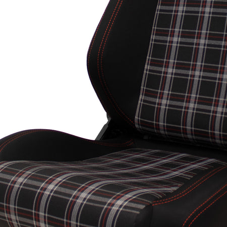 AutoStyle, Sportssæde 'VGR' - Sort med Rød Ternet + Rød Syning - Dobbelt Justerbar Ryg - Inkl. glideskinne