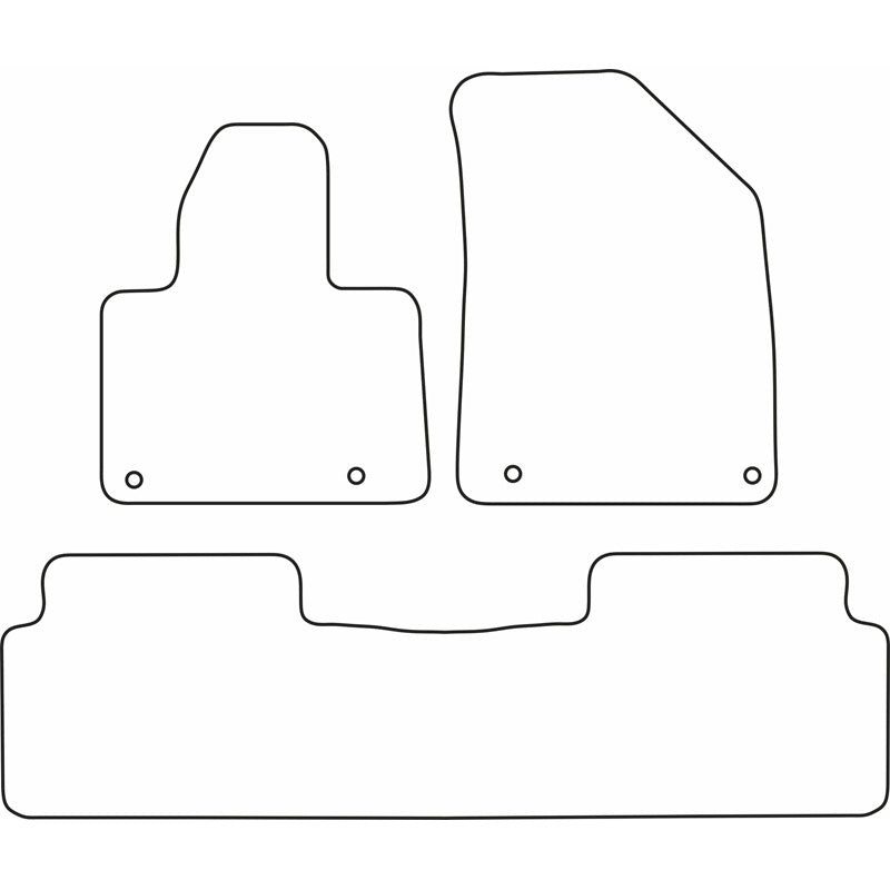 - Optimal pasform: Disse måtter er lavet af høj kvalitet sort velour og har en syet kant. De inkluderer standard fastgørelseshuller, så de nemt kan klipses ind i din bil, ligesom originale måtter.