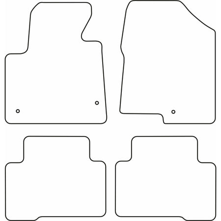 - Optimal pasform: Disse måtter er fremstillet af høj kvalitet sort velour med en syet kant. De har standard fastgørelseshuller, så du nemt kan klipse dem ind i din bil, ligesom de originale måtter. Derudover er der en granuleret skridsikker bund, så måtten ikke glider.