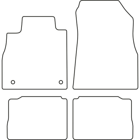 - Optimal pasform: Disse måtter er fremstillet af høj kvalitet sort velour med en syet kant og har standard fastgørelseshuller, så de nemt kan klipses ind i din bil. Den granulerede skridsikre bund sikrer, at måtten forbliver på plads.