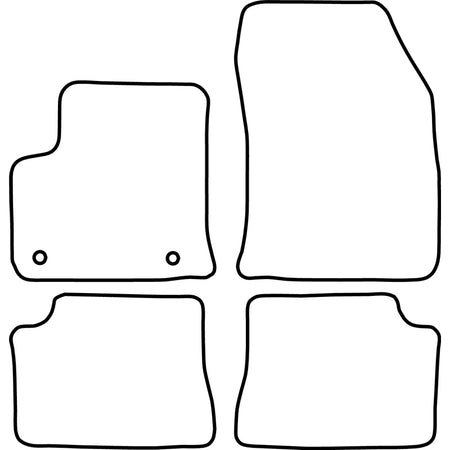 - Optimal design: Måtterne er lavet af høj kvalitet sort velour med en syet kant. De har standard fastgørelseshuller, så de nemt kan klipses fast i din bil, ligesom originale måtter. Derudover er der en granuleret skridsikker bund, så måtten ikke glider rundt.