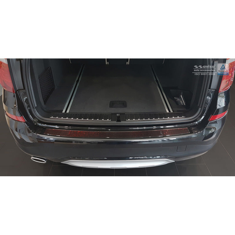 Avisa, Bagkofangerbeskytter, DeLuxe, Rustfritstål, passer til BMW X3 F25 2014-2017 Black Mirror/Red-Black Carbon