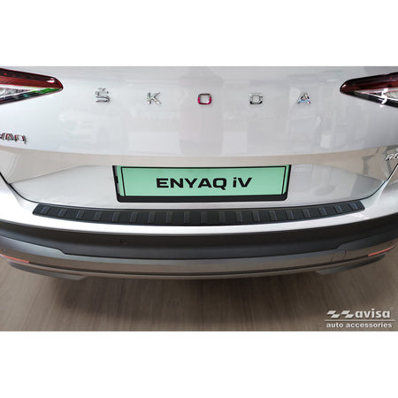 Beskyt din Skoda Enyaq iV eller Enyaq Coupe iV mod slitage med Avisa's matte sorte rustfri stål bagkofangerbeskytter. Dette produkt er designet til at give optimal beskyttelse på den udsatte del af din bils bagkofanger, der ofte lider under daglig brug som lastning og losning.