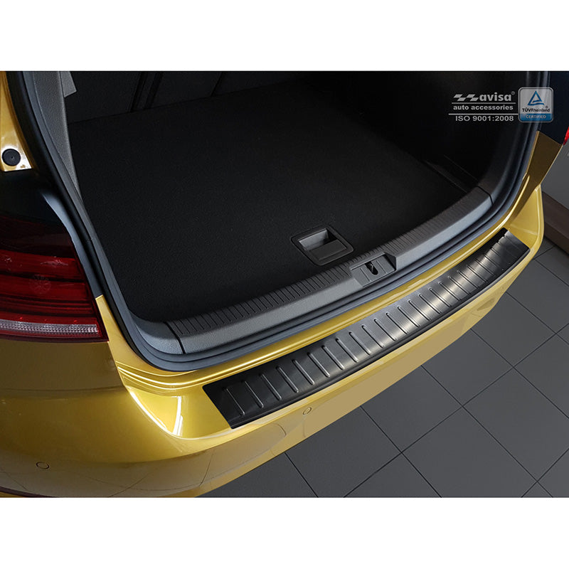 Giv din Volkswagen Golf VII den beskyttelse, den fortjener, med Avisa bagkofangerbeskytter i sort rustfrit stål. Denne skræddersyede løsning er designet til at beskytte din bil mod slid og skader, der kan opstå ved ind- og udlæsning af bagagerum.