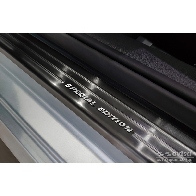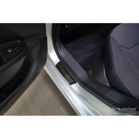 Opgrader din Skoda Fabia IV Hatchback fra 2021 med Avisa dørtrinsbeskyttere i sort rustfrit stål. Disse beskyttere er designet til at give både beskyttelse og et stilfuldt udseende, der komplementerer din bils interiør.