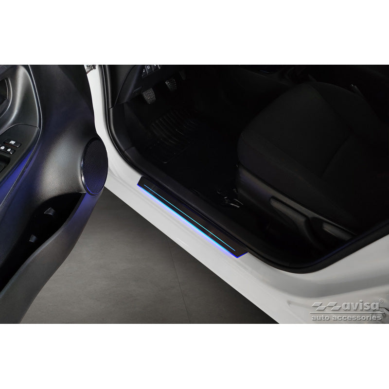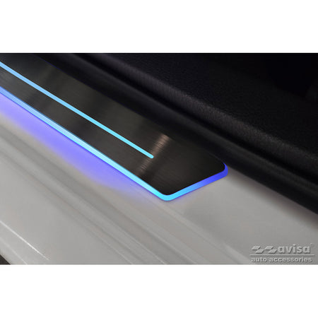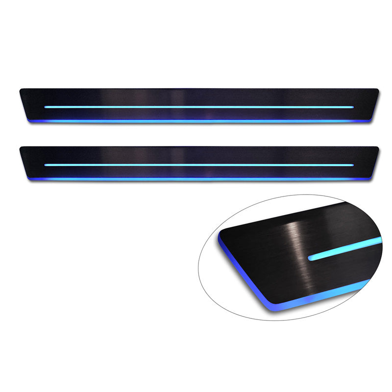 Avisa, Universel Dørkarm Beskyttelsessæt - Sort rustfrit stål med blå LED - 2-Pak - 44,8 x 4 cm