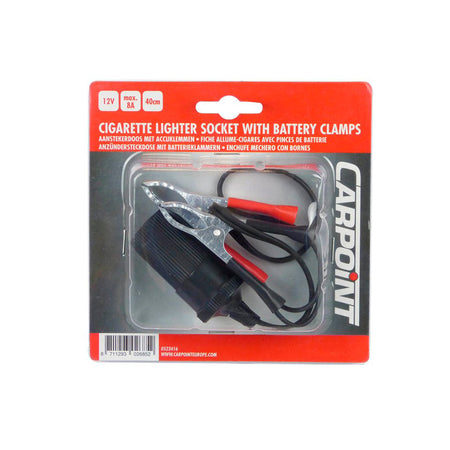 Med Carpoint cigaretlighter stik med batteriklemmer får du en praktisk løsning til at tilslutte elektriske apparater direkte til bilens batteri. Dette produkt er ideelt til brug i biler, både til reparation og vedligeholdelse samt til camping og udendørs aktiviteter.