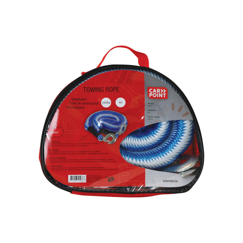 Dette elastiske bugseringsreb fra Carpoint er ideelt til at trække biler med en maksimal vægt på 2000 kg. Rebets strækbarhed og de ekstra stærke sikkerhedskroge gør det nemt at fastgøre og anvende. Medfølgende opbevaringspose gør det praktisk at have med i bilen.