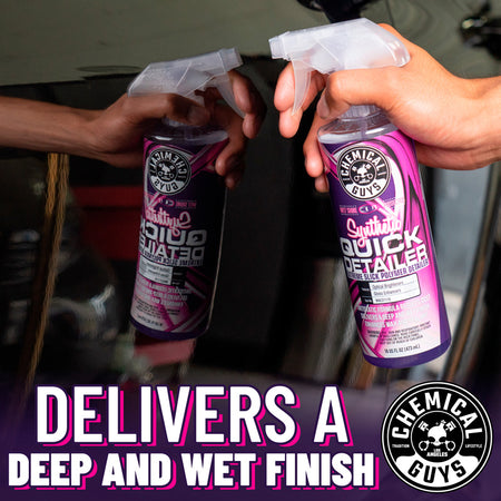 Synthetic Quick Detailer creates a streak-free shine with stunning results on any color or exterior paintwork. Use it to remove dirt, debris, bird droppings, brake dust, and road grime without scratching sensitive paintwork. The fully synthetic formula cleans and shines all paint colors in between full washes, enabling wax and sealant coats to last longer. Synthetic Quick Detailer is blended with specialty lubricants, anti-static technology, and slickening agents that reduce friction static by up to 75%. This means less dust and dirt sticking to your car, keeping it cleaner for longer.