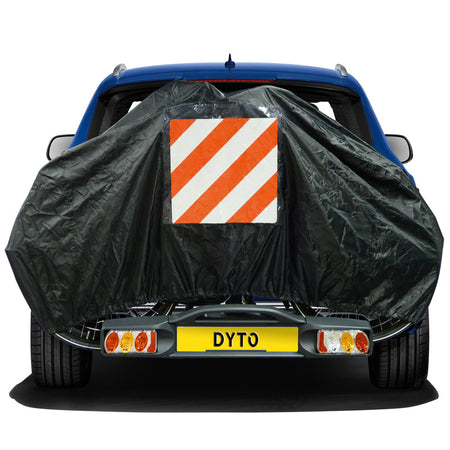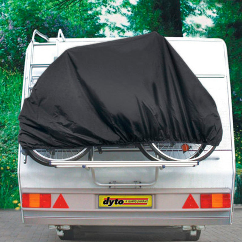 Vi anbefaler, at du ikke bruger dette overtræk i kombination med en cykelholder på din bil, da det kan fungere som en stor vindfanger. Det er dog ikke et problem, hvis det bruges bag på en campingvogn eller camper.
