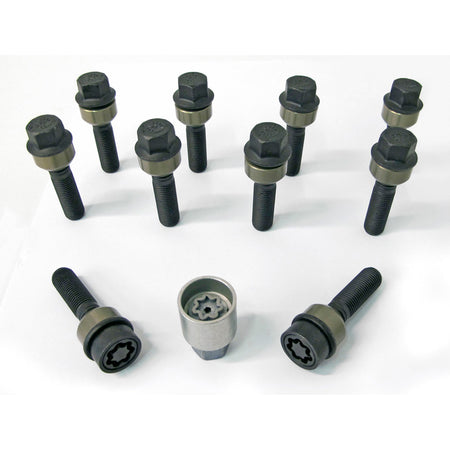 - Antal: 10 stk. (8 hjulbolte + 2 hjul-låsebolte + adapter)