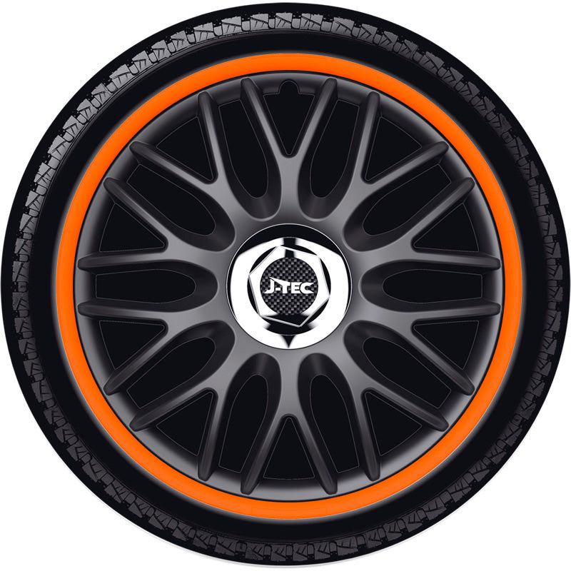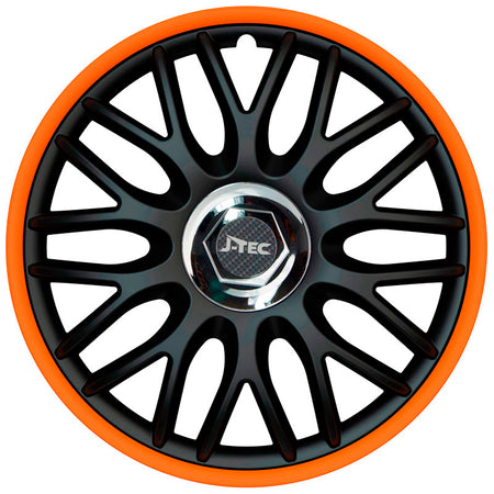 J-Tec, Hjulkapsler, 4stk, Orden R 16-tommer black/orange + chrome ring