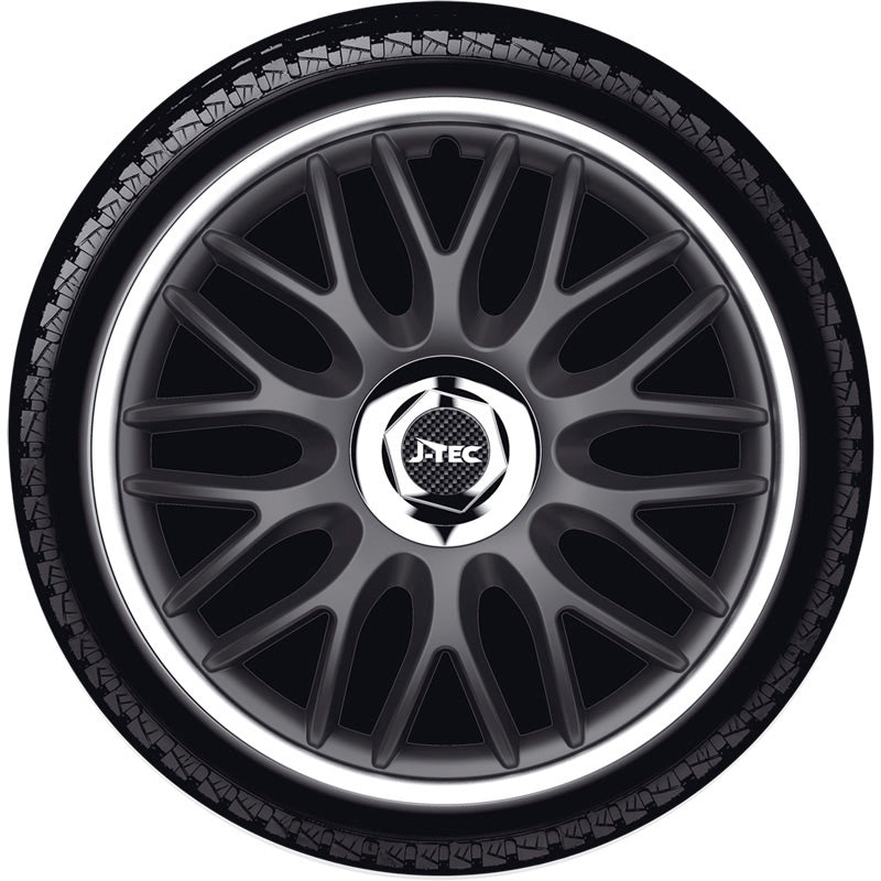 J-Tec, Hjulkapsler, 4stk, Orden R 16-tommer black/silver + chrome ring