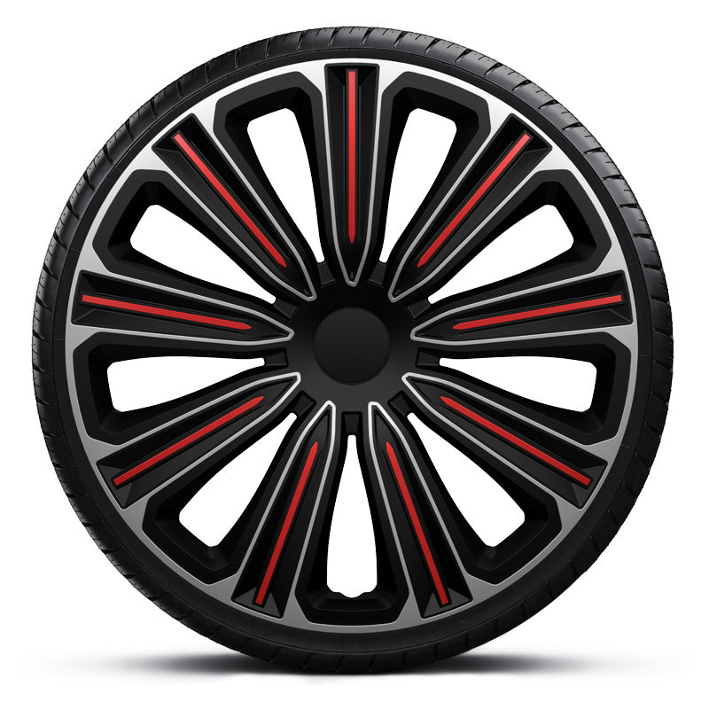 J-Tec, Hjulkapsler, 4stk, Rosso 14-tommer silver/black/red