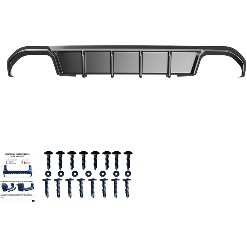 Add a touch of sophistication and style to your rear bumper with our rear diffuser. This sporty upgrade not only improves the aesthetics, but also ensures that your vehicle stands out on the road and makes a strong statement. The rear valance comes in a glossy black finish that you can easily paint if you prefer.
