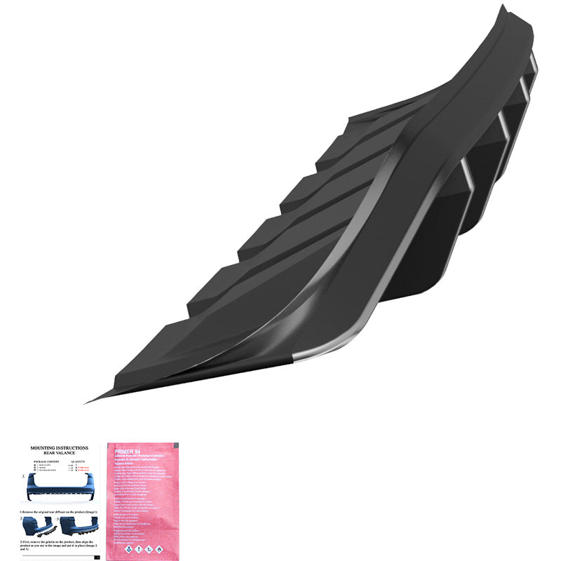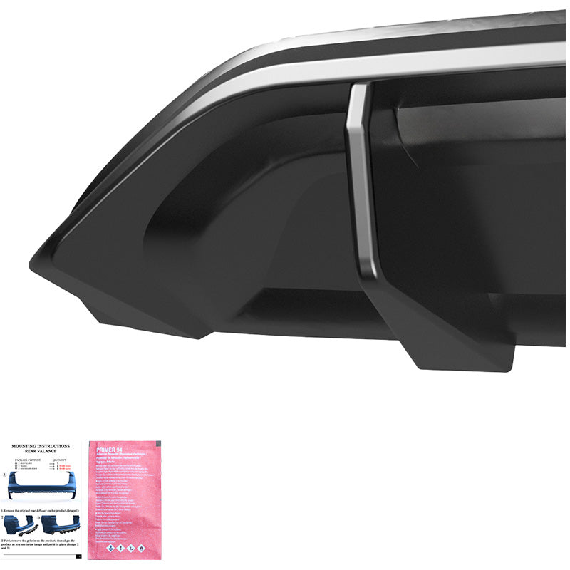 Add a touch of sophistication and style to your rear bumper with our rear diffuser. This sporty upgrade not only improves the aesthetics, but also ensures that your vehicle stands out on the road and makes a strong statement. The rear valance comes in a glossy black finish that you can easily paint if you prefer.