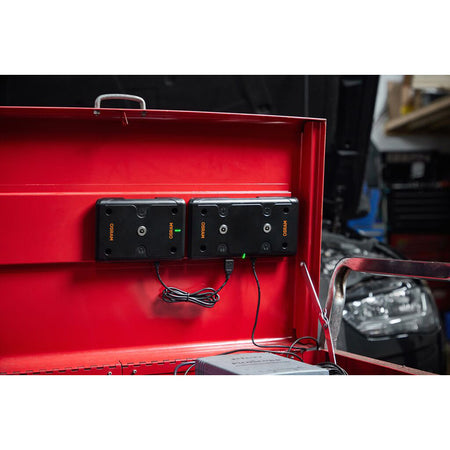 Opladningspladen er designet til at opbevare og oplade to kompatible inspektionslamper, så du altid er klar, når det gælder. Med Osram's trådløse teknologi kan du fokusere på arbejdet uden afbrydelser.