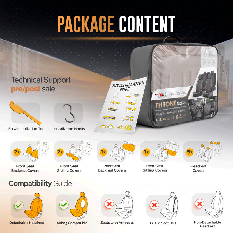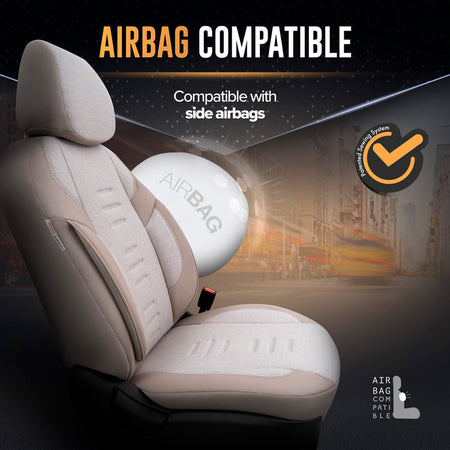otoM, Universal Sædebetrækssæt 'Throne' Crème - 11 dele - Side-Airbag Kompatibel