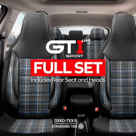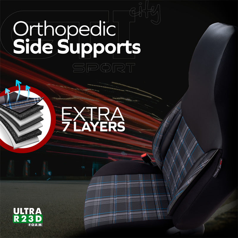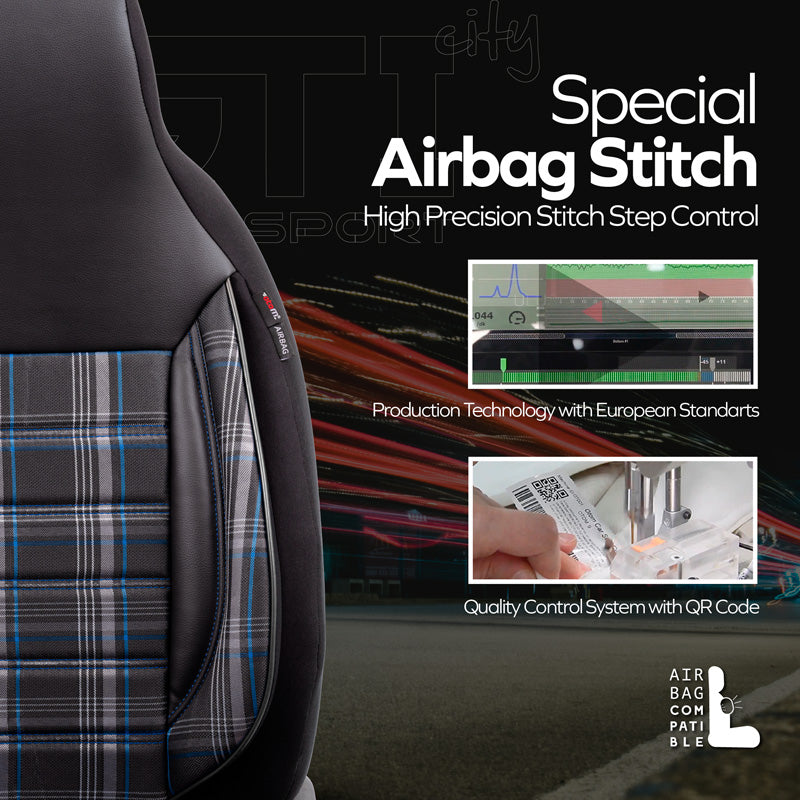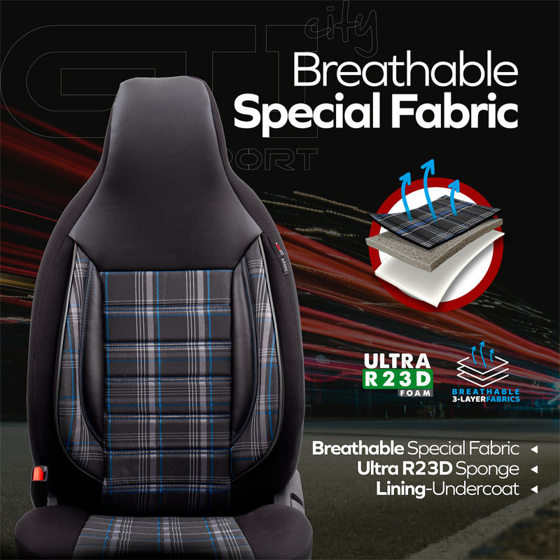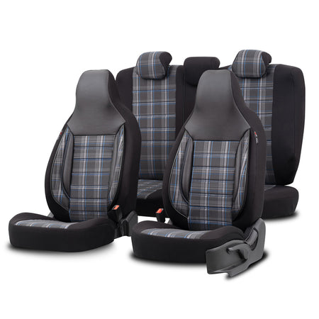 otoM, Universelt Sædebetræk 'CityBug' Sports - Sort/Grå/Blå - 9 dele - Side-Airbag Kompatibel