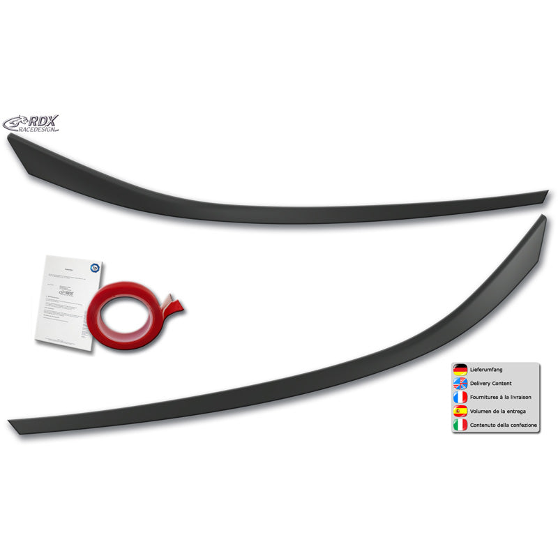 This set of head light spoilers is made of high-quality ABS/PUR plastic in original equipment quality. Supplied in black, they are flexible, break- and splinter-resistant.