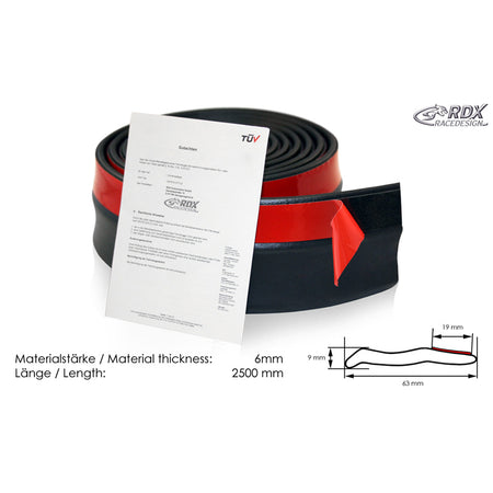 RDX Racedesign, Universel Spoilerlip SAFE 'N STYLE, 250 cm, Sort EPDM Gummi, TÜV-godkendt