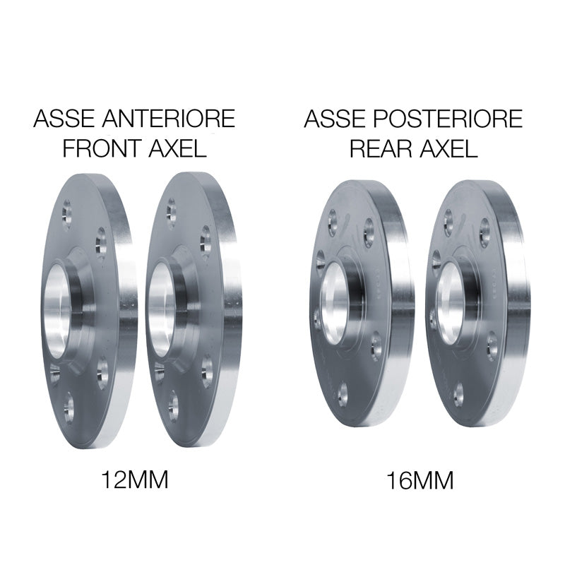 Simoni Racing Aluminium Wheel Spacer Kit - 2x12mm(front axle) + 2x16mm(rear axle) including wheel bolts - suitable for Abarth, Fiat