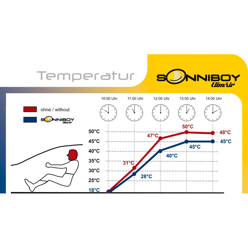 Udover solbeskyttelse har Sonniboy solgardiner flere fordele: da de dækker hele vinduet, kan du køre med åbne vinduer, hvilket tillader en kølig brise at strømme ind i bilen – ideelt for biler uden aircondition. Desuden forhindrer de insekter i at komme ind i bilen.
