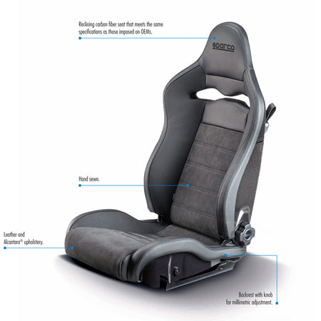 Sparco, Sport Sæde SPX DX - Passager version (Højre) - Sort Læder/Alcantara med Carbon Ryg - Reclinable