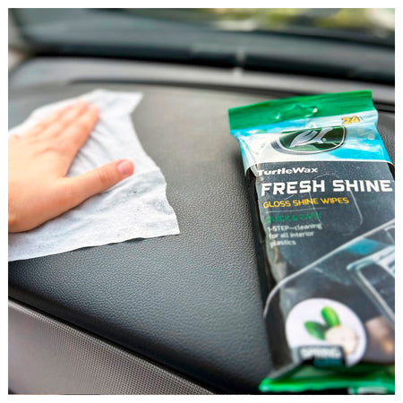 Turtle Wax Fresh Shine Spring Fresh Gloss Wipes provide quick and easy one-step cleaning for all interior plastics. Use the multifunctional wipes on hard surfaces such as dashboards, instrument panels, door panels, sills, and both driver and passenger seat shells.