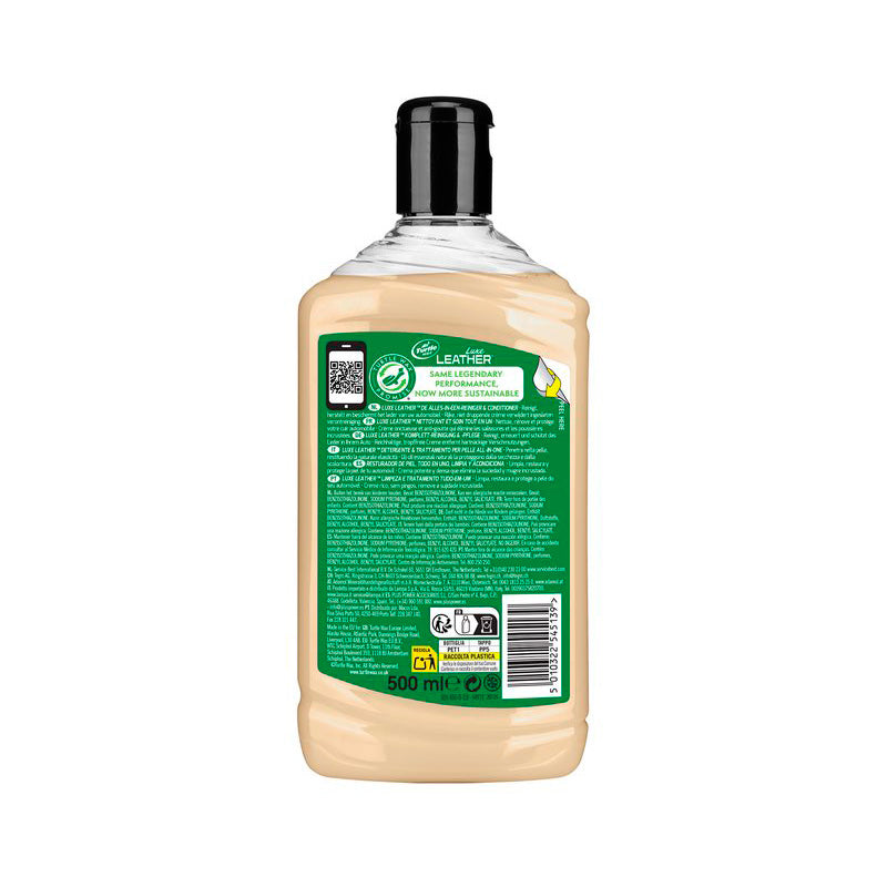 Turtle Wax GL Luxe Leather cleans and protects all leather interiors. Returns the natural softness of the leather. Protects against UV-radiation, wear and small cracks. Rich non drip cream removes ingrained dirt and restores the surfaces natural suppleness. The non-greasy formula is a pH balanced blend of cocoa butter, vitamin E and aloe vera which combine to restore luster and softness to all leather upholstery. Added UV protectors block harmful suns rays to prevent colour fading, drying and cracking of leather while conditioning oils restore suppleness and protects the leathers finish.