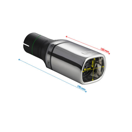 Fremstillet af rustfrit stål (inox) sikrer denne rørhale langvarig holdbarhed og modstandsdygtighed over for vejrpåvirkninger. Den er designet til nem installation med en tilslutningsdiameter på over 50 mm, hvilket gør det enkelt at opgradere din bils udstødning.
