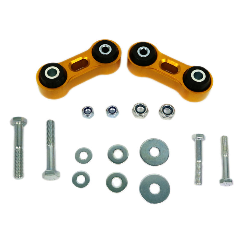 Kittet anvender en højstyrke ekstruderet legeringslink, der er udstyret med syntetiske elastomer-bushings med lav kompliance. Kritiske komponenter er opgraderet til højstyrke for at kunne håndtere de øgede belastninger. Resultatet er en mere præcis og direkte rullekontrol med op til 25% mere effektiv stangrate ved lavere hjulafbøjninger. Dette betyder ikke nødvendigvis en generel stigning i din stangrate, men snarere en hurtigere effekt, som giver en mere responsiv kørsel tidligere i bevægelsen. Linkets form og bush-monteringer er designet til at muliggøre maksimal svajbar-artikulation, hvilket sikrer fuld affjedringsrejse under vertikale belastninger.
